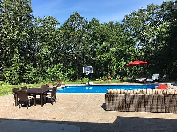 Beautiful 4 bedroom/2.5 bath colonial on quiet tree-lined street. Large kitchen and great room with gas fireplace, home office, hard-wood floors, heated garage and partially finished basement. Property features a large very private yard with a large stone patio, solar-heated/salt water in-ground pool, hot tub and in-ground sprinklers. One mile walk to Callahan’s beach; 1/4 mile to Sunken Meadow Park and Golf Course. 3 miles to downtown Northport.