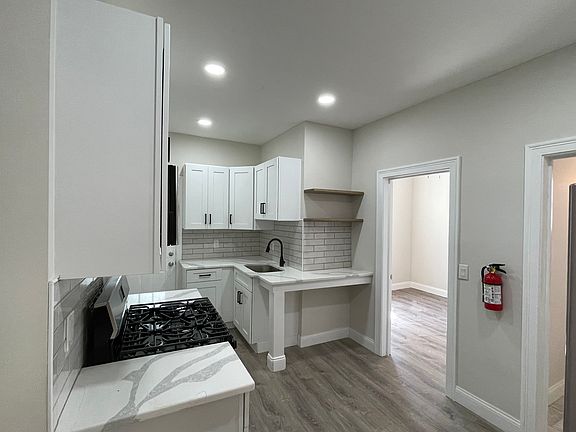 The kitchen has been completely updated with high-end stainless steel appliances, newly installed countertops, custom cabinetry, and modern fixtures perfect for both everyday cooking and entertaining. The bathroom features elegant tile work and upscale finishes that bring a clean, refreshed feel.