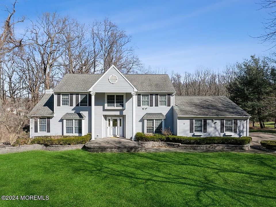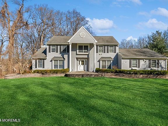 Nestled on over 3 acres in the Chapel Hill section of Middletown Township, this property combines convenience with charm. This 5-bedroom, 4-full bath colonial offers a flexible floor plan with generously sized rooms. The home features a chef's kitchen with granite countertops, a center island with seating complemented by a breakfast area. Entertain effortlessly in the great room with skylights and fireplace along with formal living and dining rooms. The first-floor bedroom and full bath adds to the versatility and convenience of the layout. A finished, walk-out basement with a full bathroom and potential kitchenette. Privacy enthusiasts will appreciate the landscaped grounds featuring a saltwater, inground pool - a perfect setting for those who enjoy hosting gatherings and events.
