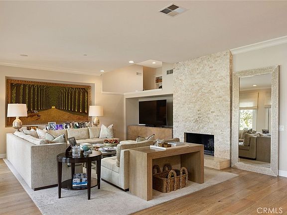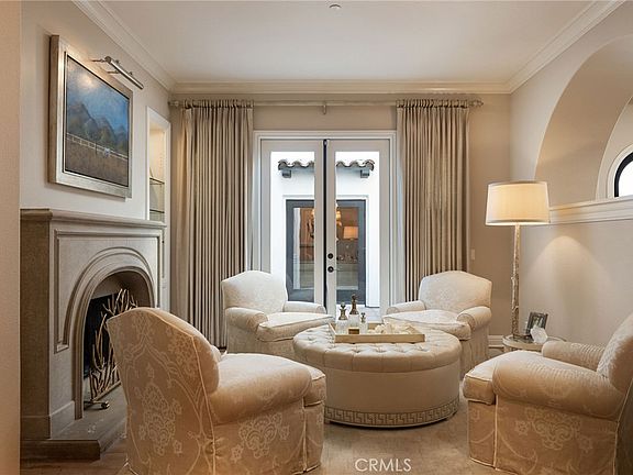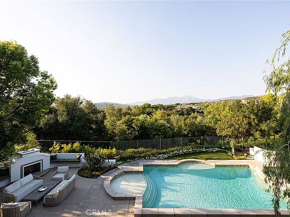 Tucked away on a private, expansive lot within the coveted gated community of San Marino in Coto de Caza, this remarkable six-bedroom residence blends timeless sophistication with modern luxury, offering panoramic vistas and a serene ambiance. From arrival, refinement defines each space. The formal living room, anchored by a grand fireplace and framed by French doors to a tranquil courtyard, sets the tone for the home’s thoughtful design and indoor-outdoor flow. Adjacent is a beautifully appointed formal dining room, perfect for entertaining. At the heart lies a reimagined gourmet kitchen with professional-grade appliances, an expansive island, cozy breakfast nook, and state-of-the-art butler’s pantry with beverage and wine refrigerators. The family room boasts a dramatic stacked-stone fireplace, integrated surround sound, and access to the breathtaking outdoor entertaining area. The main level also features a sophisticated executive office with custom built-ins and a generous guest suite with private bath and French steel doors to the garden. A spacious 3-car garage with built-in storage adds convenience. Ascend a private staircase to the opulent primary suite with fireplace, sitting room, home gym, and a sweeping balcony framing uninterrupted Saddleback Mountain views. The spa-inspired bath offers artisan tile, dual vanities, jetted tub, oversized walk-in closet, and dual-entry walk-in shower. The upper level includes three additional bedrooms, a versatile bonus room with custom cabinetry, and a detached guest casita with ensuite bath and private entrance. Outside, manicured grounds and landscape lighting frame a saltwater pool and spa, covered alfresco dining pavilion with built-in BBQ and bar, and a custom fireplace enclave with built-in seating. Ideally located near award-winning schools, the Coto de Caza Golf & Racquet Club, and scenic trails, this home embodies elevated California living with timeless style and thoughtful detail.