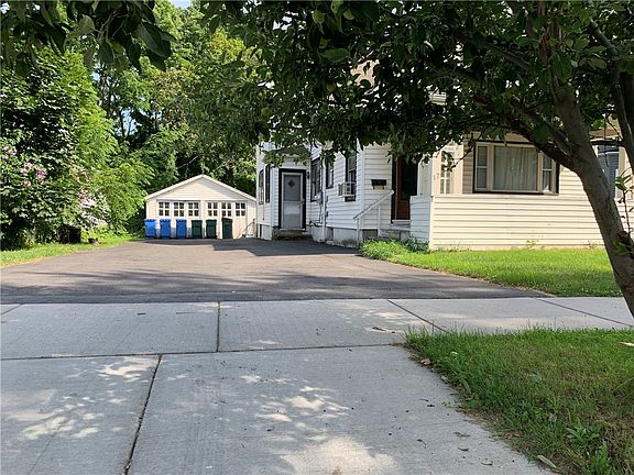 Here is your real estate investment to begin with this duplex or to add to your already existing portfolio. Superb location - close by the University of Rochester as well as to the heart of down town. The front unit is one bedroom with one bathroom and freshly rented from July 2024 at $750 per month. The Back unit 3 bed, one bath, also freshly rented from July 2024 at $900 per month. The roof is new from 2018. Water heater is newer as well. Please use the latch at the left side of the garage to open and access its interior view. The stoves and refrigerators of both the units belong to the owner.