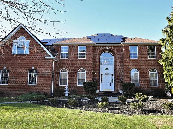 Center hall colonial w/ 5 beds, 3 baths Monroe at Old Forge. Features: formal living & dining rms; 2 story family rm w/ high ceilings, tall windows & fireplace; kitchen w/ center island, SS appliances, tile backsplash & breakfast area; 1 bed & 1 bathroom perfect for guests! Upper lever features: master suite w/ vaulted ceilings, sitting area & lavish bath w/jacuzzi tub, shower, & double sink; 3 more spacious bedrms share a full hall bath & complete the second floor. Vacation at home w/ just under an acre of lawn, covered patio, & fenced-in pool w/ waterfall! Also: partial finished basement, new Central A/C compressor, solar panels, recessed lighting throughout & 2 staircases. More more!