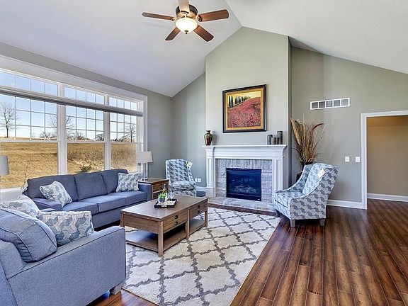 BEST VALUE IN PEBBLE CREEK! YES, THE EARTH IS FLAT;-) BUT ALL ROADS LEAD HOME TO GOLF COURSE VIEWS IN THIS FABULOUS 4 BR RANCH w/MAIN FLOOR LAUNDRY! CERTIFIED PRE-OWNED w/Whole House Inspection, Appraisal, & Home Warranty completed/available. FAST POSSESSION poss. OPEN FLOOR PLAN opens to the spacious great room w/soaring CATHEDRAL ceilings and the GOURMET KITCHEN w/walk-in PANTRY, GRANITE counter-tops, and STAINLESS appliances. Master-suite offers trey ceilings and lovely bath w/ large walk-in shower. 3 bedrooms on the main level PLUS one below makes for plenty of space for family or guests. Enjoy the GOLF COURSE VIEW from your SCREENED PORCH. The lower level offers an abundance of finished space including an EXERCISE RM, and craft or OFFICE room; The oversized REC ROOM with WET BAR is a great place to ENTERTAIN! All this and additional STORAGE space as well! Just a short distance to the golf course, and PLEASANT VALLEY SCHOOLS! Call and reserve your new home today.