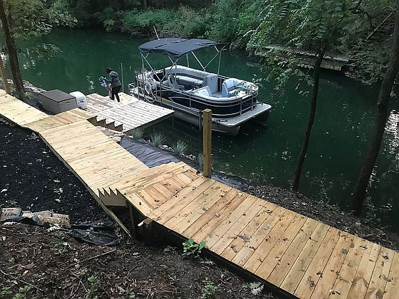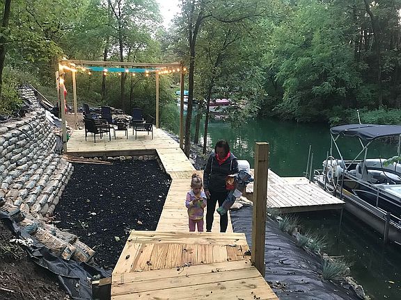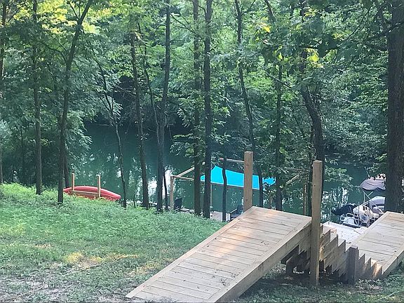 Prepare to fall in love, because you'll not find anything else like this contemporary California Hillside style home at Lake Thunderbird. Sitting on a protected cove of the lake and surrounded by nature, it was built in 2019 and has an expansive open floor plan for modern living. Huge kitchen with all high end appointments; quartz counters, farm sink, stainless appliances including a 48" stove. Cook and entertain to your hearts content! Serve at the breakfast bar or sit down to dine in the spacious dining area with French doors looking out over the nature view and lake cove. Head out to the 10X46 foot deck to breathe in the lake air and soak up the sun. The entire first floor has vaulted ceilings and lots of windows to let in the light along with the view! Italian tile wood look flooring graces the main level with a rich look and easy upkeep. Cooler weather is coming and this home is prepared with a wood burning stove that will heat the entire main floor. Main floor master has French doors to the deck for morning coffee time or a pre-sleep meditation, as well as a private bath with double vanity and glass block walk-in shower. Double walk in closets and the laundry conveniently located and hidden behind mirrored doors complete this stunning area. Tankless water heater provides hot water on demand - no waiting. Upstairs you'll find 2 additional bedrooms also with vaulted ceilings. One is large enough to be a bunk room for guests, or to be split into 2 bedrooms, or to add a bath. Options available to suit your specific needs. What you will really want to do here is get outside and enjoy the water! Walk down to the dock and get on your boat. It's just a short hop to the beach for swimming, and the fishing is great too. Relaxing on the lake front deck or having a bonfire by the water are not to be overlooked either and this property provides both options! This house was built for fun! The oversized garage is heated with 10' ceilings, easily accommodating your vehicles and leaving plenty of room for storage. Lake Thunderbird is 2 hours from Chicago. Come and enjoy living lake life with boating, swimming, private beach, pool. clubhouse, nature trails, tennis, and special events!