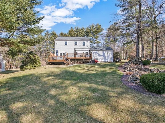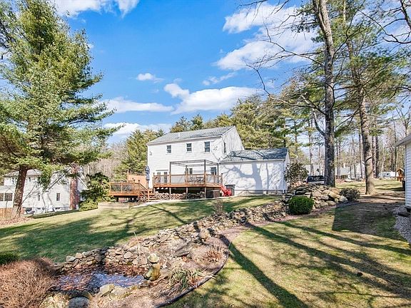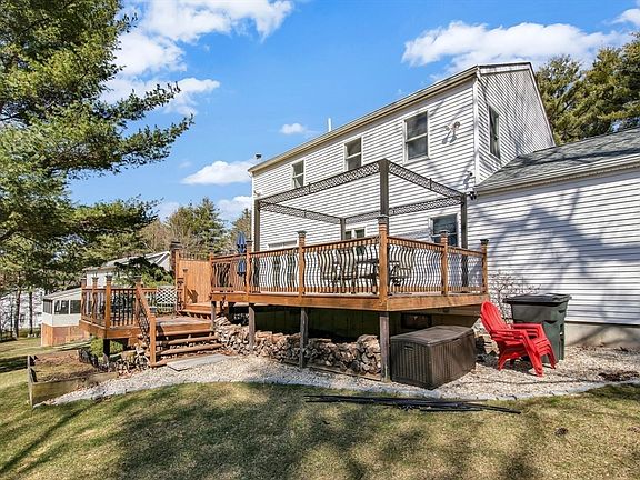 A breathtaking kitchen sets the stage for this welcoming home, featuring a center island and sleek stainless-steel appliances that flow seamlessly into the eat in dining space. A french door opens to a remarkable three-tier deck. The cozy living room, highlighted by a wood-burning fireplace, creates the perfect ambiance, while a formal dining room and half bath complete the first floor. Upstairs, the second level boasts a luxurious main suite with a walk-in closet, an additional single closet, and a full bath, accompanied by two more bedrooms and another full bath. The finished lower level adds even more living space with a family room. Exit outside to your personal backyard retreat, showcasing a stunning 20x20 patio with a fireplace, built-in grill, a 55-ft waterfall feature with a koi pond, and a powered shed with a garage door opener. As pre seller; oil tank (2023), roof (2019), windows (2022), gutters (2023), HVAC system (2023). SUBJECT TO SHORT SALE WITH LENDER APPROVAL.