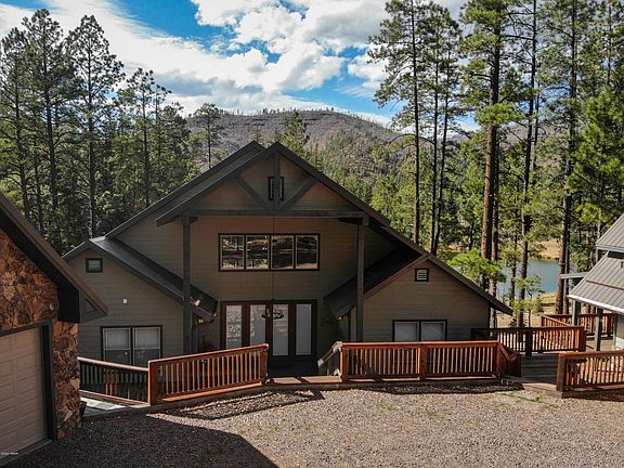 GORGEOUS WATERFRONT CABIN W/ QUAINT GUEST COTTAGE & 5 BAY GARAGE! CUSTOM ARCHITECTURE W/ POND & MOUNTAIN VIEWS FM EVERY WINDOW! SPACIOUS 5250 SF IN MAIN HOME & COTTAGE- THE COTTAGE 1BR/1BA OFFERS POTENTIAL INVESTMENT VACATION RENTAL OPPORTUNITY. THIS IS ''SCOTTSDALE LIFESTYLE IN ALPINE AZ''... MAIN HOME- SOARING 20' VAULTED T&G CEILINGS W/ INCREDIBLE CUSTOM CHANDELIERS SHINE ON THE GREAT ROOM W/ FORMAL DINING & CHEF'S KITCHEN PERFECT FOR ENTERTAINING. GRANITE COUNTERS, WET BAR, CUSTOM HICKORY CABINETS. HUGE MASTER ENSUITE ON MAIN LEVEL. DECK W/ AWESOME VIEWS- SO PRIVATE! ENG BRAZILIAN ACACIA HARDWOOD FLOORING THRU-OUT. UPGRADES GALORE! WALKOUT FINISHED BASEMENT BOASTS LIBRARY W/ PRIVATE DECK . COTTAGE IS A CHARMER W/ HEATED 3 CAR GARAGE. METAL ROOF, CONCRETE SIDING. CALL FOR APPT TODAY!