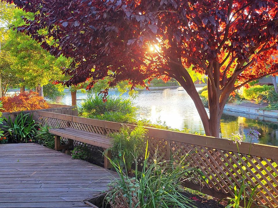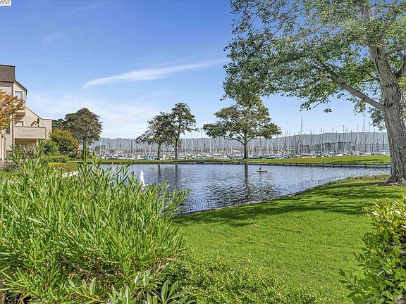 Water views from every window! Amazing location in Marina Village. Lower-end unit, with wraparound yard facing both the lagoon and marina. Spacious open-plan living with beautiful hardwood floors. Updated kitchen with marble counters and high-end appliances. Main bedroom has ensuite with heated floors, and walk-in closet with storage system. Large indoor pantry/storage room. Attached garage with lots of additional storage. Walking distance to trails, parks, restaurants, and shopping.