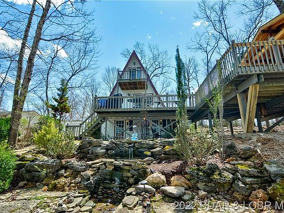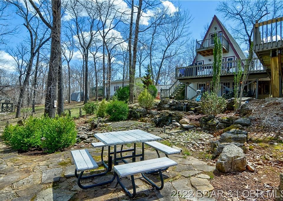 Great fishing destination for a weekend or full time living! On nearly 3 acres this unique property has a lot of extras. Charming A-Frame with refinished wood throughout, cozy living room with bar, updated kitchen, full bath with walk-in shower and tub, large master bedroom with private deck on upper level, finished guest bedroom and half bath/laundry facilities on lower level. This private property offers large entertainment space which includes a a huge deck with a covered kitchen\bar, hot tub, firepit, and picnic area landscaped with 2) water features that accommodates a large gathering of family or friends. The HUGH heated and cooled workshop includes built in workbenches, several tools, sound system, a finished office, and other inclusions. A very large RV/Boat storage with electric hookups. Also included are several sheds with electric. Security cameras setup on property. Trail to the lake and community dock access.