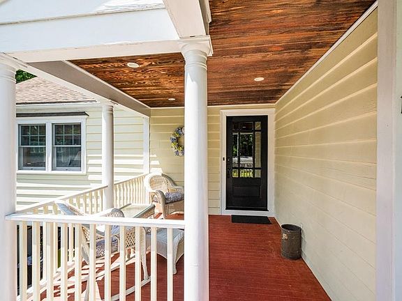 Expanded Cape blends timeless charm with thoughtful updates, offering inviting living spaces designed for comfort and connection. A fireplaced living room with hardwood floors and French doors sets a warm tone, flowing into an elegant dining area accented by custom built-ins and refined detailing. The kitchen serves as the heart of the home, featuring stone countertops, stainless appliances, and a generous island that opens to a sunny dining area with direct access to outdoor living—ideal for everyday enjoyment and entertaining. The main-level primary suite, along with a versatile family room or optional bedroom, provides flexibility for a variety of living needs. Upstairs, additional bedrooms offer comfortable retreats with excellent closet space and natural light. A finished lower level extends the living area with adaptable space and walk-out access to the garage. Outdoor spaces include a welcoming porch, deck, and patio, creating a peaceful setting for gatherings and relaxation