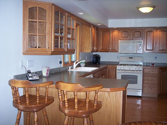 Wonderful ranch in one of Chili's most lovely neighborhoods w minimal traffic, spacious lots and mature trees!Tastefully updated w hardwood floors throughout and updated kitchen!Garage is designed extra deep and can accommodate 2 smaller vehicles front to back.2 large bedrooms vs 3 small bedrooms!Pantry can accommodate a stack washer/dryer for a 1st flr laundry if desired.Lovely deck with above ground pool w expensive handicap accessible portable stairs.Woodburning fireplace and updated thermopane tilt-in windows.Kitchen features new sink,faucet,laminate flr,countertop,wine rack,breakfast bar.