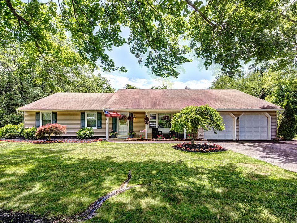 Here is your chance to move into this beautiful area with great schools at an affordable price. This 3 bedroom 2 full bath ranch is located on a quiet street on a large lot where you can enjoy lots of privacy when sitting on the beautiful stone patio surrounded by mature trees. Family room has a large brick wood burning fireplace perfect for cold evenings. There is an eat in kitchen with granite counter tops, as well as a formal living and dinning room, laundry room and two car garage