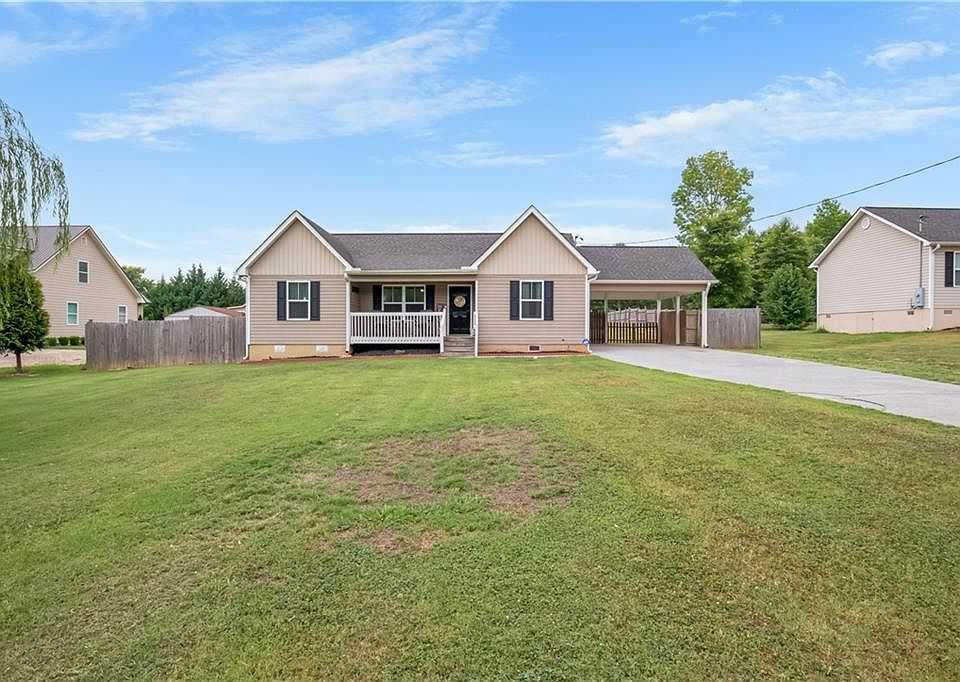 Welcome to this adorable ranch-style home that blends comfort and charm. Features include a Rocking Chair Front Porch perfect for relaxing with a drink and enjoying the neighborhood; Split Floor Plan offers privacy and space with the master bedroom separate from the other two bedrooms; Master Bedroom comes with a generous walk-in closet; Spacious Eat-In Kitchen is ideal for family meals and entertaining; Mud Room/Laundry Area includes a large storage closet to keep things organized. The exterior boasts a Large Level Front & Back Yard great for outdoor activities and gardening; 2-Car Carport features a pull-through gate for easy access to the backyard; Privacy Fenced Backyard ensures privacy and security; Newly Constructed Back Deck is perfect for outdoor gatherings and enjoying the fresh air; Fire Pit Area ideal for cozy evenings around a fire; 2-Bay Workshop, whether you're looking for a ManCave, SheShed, or extra storage, this space has you covered. With all these wonderful features, this home is an excellent choice for a young family or those looking to downsize. Plus, it’s located in a USDA-eligible area and has no HOA fees! Come see this gem today and make it your own!