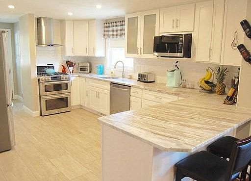 - Kit Dscrp: Pantry, Dining Area, Countertops - Stone/Granite/Solid, Cabinets - Upgraded, Deck - Exterior, Flooring - Stone/Ceramic Tile, Stainless Steel Appliances, Open Floor Plan, Recessed Lighting, Countertops - Upgraded, Remodeled, Exterior Access, Bathroom - Half, Gas Stove, Peninsula, Lighting - Overhead