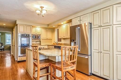 Your search for an updated home with quality craftsmanship & design ends at this home. A warm inviting foyer invites you into a formal front to back living room w/hardwood floors. The formal dining room features hardwood floors & built-in wine rack. The gourmet style kitchen boasts custom cabinets, island w/cooktop, granite countertops, ss appliances & dining area w/cathedral ceiling. A large family room w/fireplace, skylights & a wall of windows allow great natural light & access to deck area is the perfect place for casual entertaining. Upstairs, the master suite offers a walk-in closet, hardwood floors & master bath w/jacuzzi tub & custom built cabinets. Four additional bedrooms w/hardwood floors, closets & two full bathrooms provide the space & convenience your family & guests will need.The lower level features a recreation room, exercise room & storage area. Step outside & enjoy your private oasis from the spacious deck or sprawling level yard. This elegant home truly has it all!