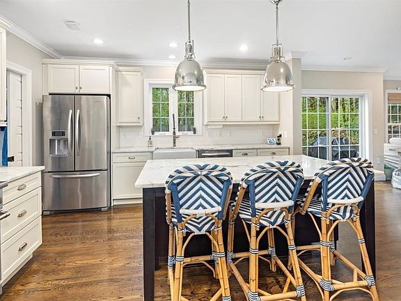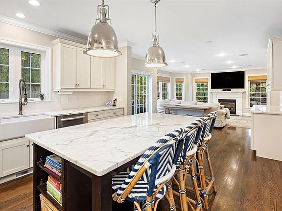 WORLD'S END LOCATION! Gorgeous custom built home is move in ready. Walk right in and enjoy the open floor concept with great ceilings height, kitchen in the heart of it all, white cabinets, Carrara countertops, large island to gather at and stainless appliances that opens right up to the family room with a gas fireplace. There are sliding glass doors that not only bring in a ton of sunlight-they open out to the oversized wooden back deck and stone terrace complete with a large outdoor fireplace. The dining room can accommodate large gatherings. The den has french doors and can make a great office. There is a large screened in porch for those summer nights. A large great room off the kitchen allows for extra play space with built-ins and sliding BARN door. There is a mudroom as well as a half bath. Four large bedrooms each with excellent closets & hardwood floors. WOW factor, FINISHED 3rd floor with a rock climbing wall. Launch kayak, swim or walk World's End #LifestyleA++