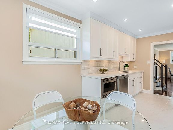 Carefully thought-out renovationsWhite cabinetryDecor backsplashQuartz countersStainless steel appliancesValance and pot lightingCrown moulding