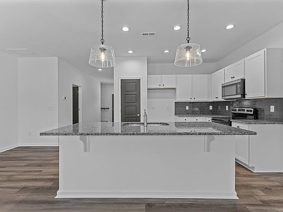 END UNIT w/1-CAR GARAGE! Covered Front Porch! Luxury Vinyl Plank Flooring through Main Living! Kitchen: Granite Ctops, Tile Backsplash, Custom Painted Cabinets, SS Appliances Incl Smooth Top Range, MW & DW, Large Center Island w/Breakfast Bar & Pantry! Open to Spacious Dining w/Access to Rear Patio & Storage Area! Large Owner's Suite: w/Plush Carpet & Triple Window! Owner's Bath: Dual Vanity w/Cultured Marble, Custom Stained Cabinets, Step in Shower, Private Water Closet & Linen Closet! FamilyRm: Open Entertainment Area w/HWD Style Flooring!