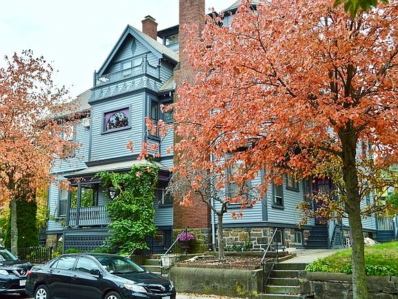 Sylvester Parshley's historic 1893-94 own Queen Anne, considered the "most splendid house of it's type in Boston." He is notable for the Lib. of Congress and the Vanderbilt's 'Rough Point'. Enter via stained-glass doors to an 18' paneled oak stair w/carved banisters to a hall with hand carved 3 panel etched glass window. Master is through a rare folding-pocket door. MBR has original "bubble" stained glass window, firepl & deck. Next is a dressing room with original built-in wooden wardrobe leading to the bath, retaining their original textured glass. Aside the master is the study w/beveled glass 1/2 round window plus a 3-panel window, both sides carved. Thru a pocket door is the living room w/carved moulding & mantel, fireplace w/rare Chelsea tile. Dining entry is a 3 panel pocket door w/"bubble" stained glass. Moulding commissioned by Vanderbilt w/intricately carved faces line the room. Glass hutch w/carved rosettes, dark hdwd floor, stained glass panel & an opening onto a deck.