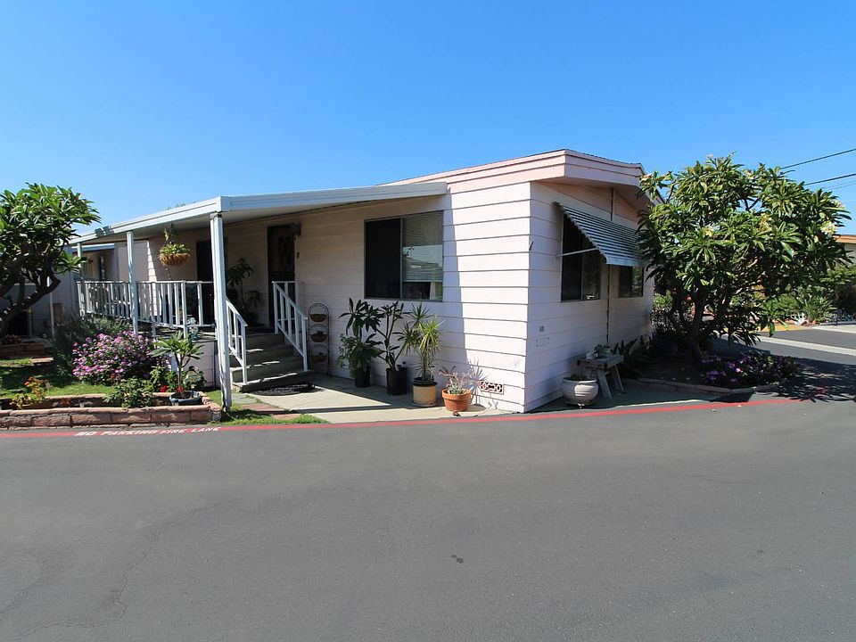 Beautiful Move-In Ready Skyline Home Please consider this Spacious Home in Rancho La Paz Mobile Home Park. This 880 sq. ft. Home has 2 Bdrms, 1 Bath, Large Master with Walk-In Closet, Great Location & Offers Great Outdoor Living. At this Price This Home Will Sell Fast! Other Features Include: High-Quality Skyline Construction. Covered Parking for Two Vehicles. Spacious Kitchen with tons of Cabinets and All Appliances Included. Laundry Area with Washer & Dryer Included. Spacious Master Bedroom with Large Walk-In Closet. Private Corner Location. Central Heat & Newly Installed A/C. Large Shed for storage. Bathroom Recently Remodeled. Beautiful Front Flower Beds and Trees. Over sized Covered Porch for Relaxing and Entertaining Friends. Absolutely Beautiful in Every Way. Great Location in the Park Near Entrance and Community Center. Meticulously Cared For Home. Close to Shopping, Dining, Church & Many Activities. Great 55+ Park With Low Space Rent of $1,000. Sparkling Pool, Spa, Community Center & Professional On-Site Management.