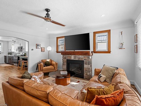 Welcome to 17 Davis Street W, Simcoe. Nestled in a desirable, mature, treed neighbourhood, this beautifully updated 1.5-storey home is truly one of a kind. With thoughtful renovations throughout, it blends modern upgrades with stylish, trendy accents-making it a dream for today's homeowner. Curb appeal is abundant from the moment you arrive, with a freshly paved driveway, new concrete walkways and front porch, all framed by mature trees and professionally landscaped gardens. Step into the inviting entrance featuring custom built-in storage to keep everything organized and out of sight. From there, you're welcomed into a spacious living room, filled with natural light from large windows, anchored by a cozy gas fireplace with Mennonite stone, and accented by arched entry ways. The generous, sleek & stylish eat-in-kitchen is perfect for any home chef, offering both function & charm with custom built in cabinetry, newer appliances, exposed brick & an abundance of natural light from 3 large windows. The main floor also includes two bedrooms, a beautifully updated 4-piece bathroom, convenient main floor laundry & walk-in linen closet with a window. With its open-concept layout & practical design, this level offers complete self-sufficiency. Upstairs, the loft serves as a private & spacious retreat, currently accommodating a king-size bed & featuring 3 skylights, a 3-piece ensuite & office nook. Every bit of the home's original charm has been thoughtfully preserved, all while maintaining a fresh and updated vibe. An unfinished basement offers ample opportunity to make the space your own. Outside, enjoy a fenced & landscaped yard with tall trees & evergreens, freshly poured concrete entertaining space and a bonus detached garage-perfect for a creative studio, workshop, gym or home office. With endless upgrades, standout charm, and an unbeatable location, this home offers tremendous value. Full list of upgrades available in supplements.