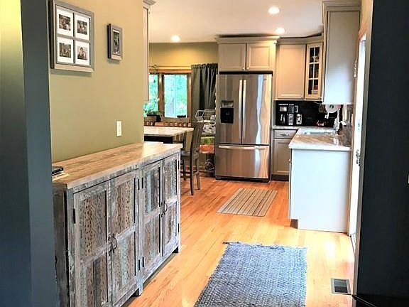 - Kit Dscrp: Window(s) - Picture, Main Level, Dining Area, Flooring - Hardwood, Countertops - Stone/Granite/Solid, Deck - Exterior, Kitchen Island, Stainless Steel Appliances, Recessed Lighting, Slider, Wine Chiller