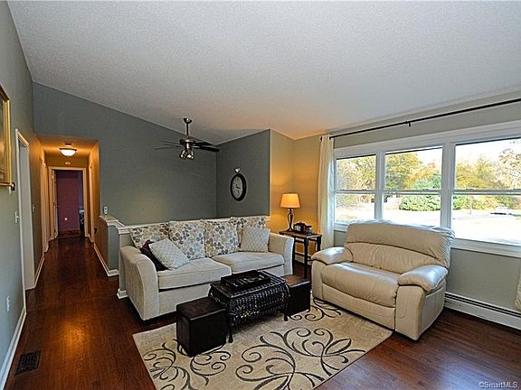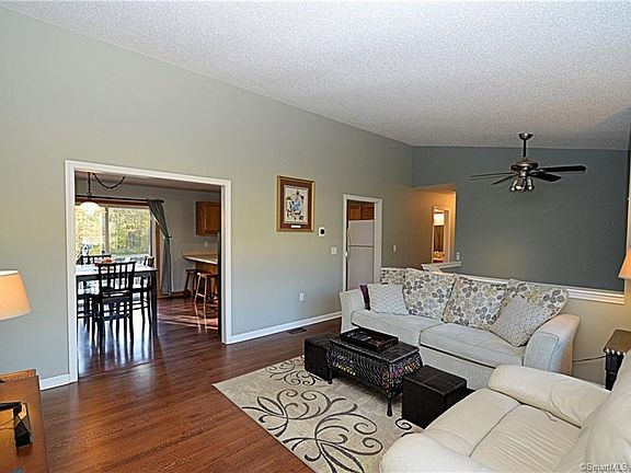 Call or Text the List Agent Joyce Covone 860-608-1708! Opportunity is Knocking for the Buyer that wants a Turn Key Home Open floor plan with a vaulted ceiling in the living room that opens to the dining room with a slider to the 12x10 deck. Kitchen with oak cabinets, breakfast bar and plenty of counter top space. Master Bedroom with full bath and tiled shower. Attractive family room with pellet stove to reduce heating cost. Freshly painted interior, New Harvey windows just installed, and a generator hook up. Oversized 2-Car garage. Large fenced in area perfect for pets, fruit trees, and a plush green level yard with garden shed in a cul-de-sac neighborhood.