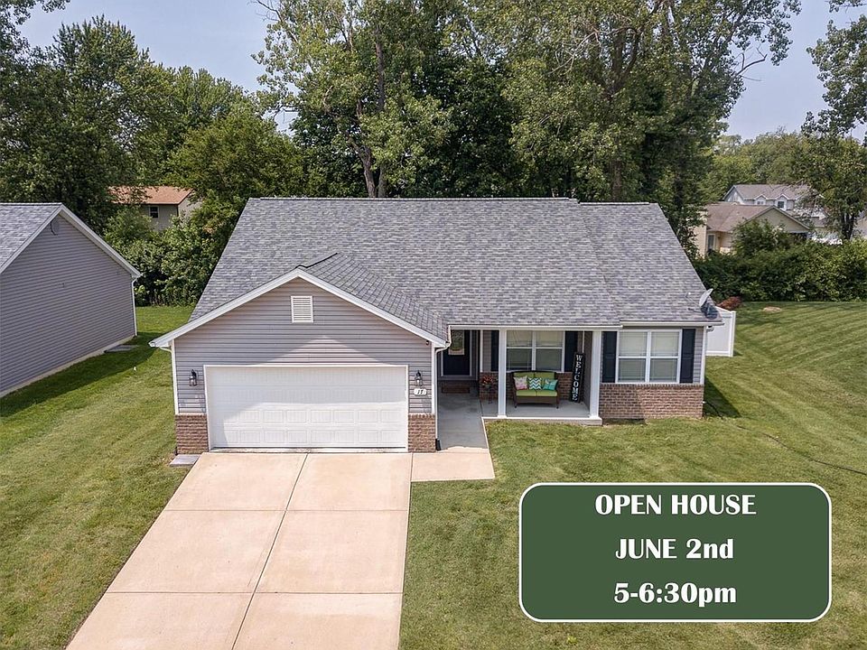 This newer, one story home will meet all your family's needs with 3 bedrooms, 2 baths, a 2-car garage, a covered front porch, and a large flat yard completely fenced in with a privacy fence. With an open concept design connecting the kitchen, living, & dining areas, you'll enjoy a seamless flow of space, ideal for both daily living & entertaining. The modern kitchen has white cabinets, a center island, granite countertops, and a pantry. The main floor laundry and drop zone near the kitchen will make everyday chores a breeze. The lovely master suite has a spacious bedroom, a walk-in closet, and a nice bathroom with a double sink. The basement has a family room that is framed in and a bathroom rough in for a future bathroom. First open house is tentatively scheduled for June 2nd from 5-6:30.