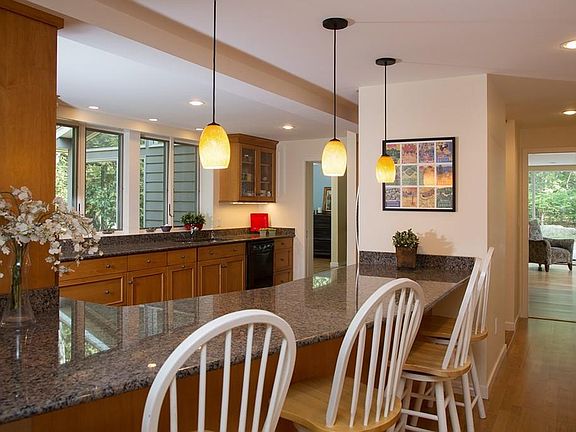 THIS is the one! Located on the corner of a cul-de-sac, this large, updated, and expanded mid-century-modern Techbuilt home was designed by Modernist pioneer, Carl Koch. It features a 1000 s.f. 2006 addition which includes a new kitchen, master bedroom, dining room, family room and mud room. Serene light-filled dining room with vaulted ceilings that opens to formal living room, with the extra-large windows one hopes to find in contemporary homes. The kitchen has granite counter tops, custom cabinets, and new appliances, open concept to family room. Mud room with large closet. Post-beam construction allows wide open space and flexibility in floor plan changes. Five generously sized bedrooms including a large master with full bath and walk-in closet. New Andersen windows throughout. A stone's throw to the new Estabrook School and conservation land. Bonded optional membership in Paint Rock swimming pool.