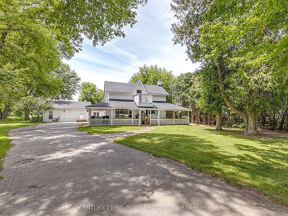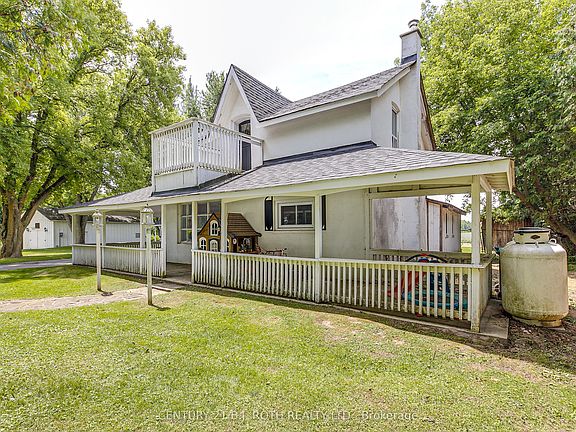 Tranquil Century Home with Separate In-law Suite and Large Workshop. Nestled on a park-like setting overlooking a picturesque farm meadow. This spacious century home offers a unique blend of historical charm and modern amenities. Sitting on over half an acre of land with mature trees and a peaceful atmosphere. The farm size kitchen and large family room are the heart of the home. Upstairs you will find an expansive master with laundry and 3 piece bath. The Wrap-around Covered Porch and the Juliet Balcony adorn the main house. In the yard you'll find a beautiful gazebo, perfect for summer picnics. The main floor features a private 1 bedroom in-law suite, complete with its own entrance and deck ensuring privacy and convenience for guests or as a potential income. A large garage/workshop provides plenty of room for hobbies and storage. Landscaped grounds with mature trees create a serene backdrop, inviting relaxation and outdoor enjoyment. Additional storage space is provided by a sea can. This home is an oasis of tranquillity, offering a blend of modern functionality and the charm of yesteryears. Whether you're seeking a peaceful retreat for your family or considering income potential through hosting guests, this property offers comfort in a desirable countryside setting. Recent upgrades include some new windows 2018, Furnace fireplace and propane appliances 2018, Roof 2017 on house, reverse osmosis filter in kitchen,