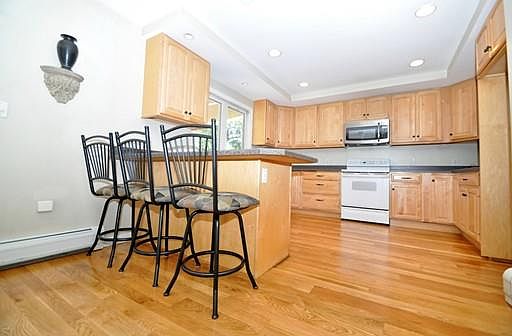 Fantastic 4BR, 2FB Colonial with Farmer's Porch on excellent side street location. Beautifully renovated with gleaming hardwood floors, modern oak cabinet kitchen, large living room with sliders leading to multi-level trek deck, 1st floor bedroom, den or office, 2nd floor has master bedroom with bay window, 3rd level huge L-shaped playroom, alarm system, partially finished walk-out basement with laundry room and work shop. Professionally landscaped enormous backyard, rock garden and storage shed with electric power and water. Walking distance to schools, parks, shopping, etc. This home is a MUST SEE!