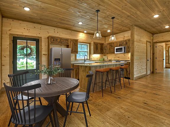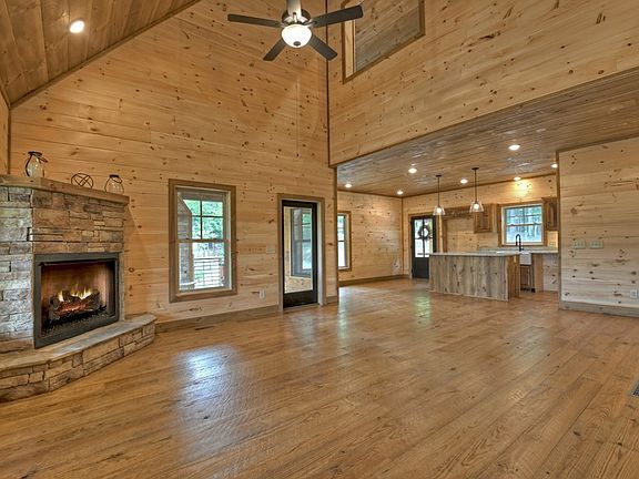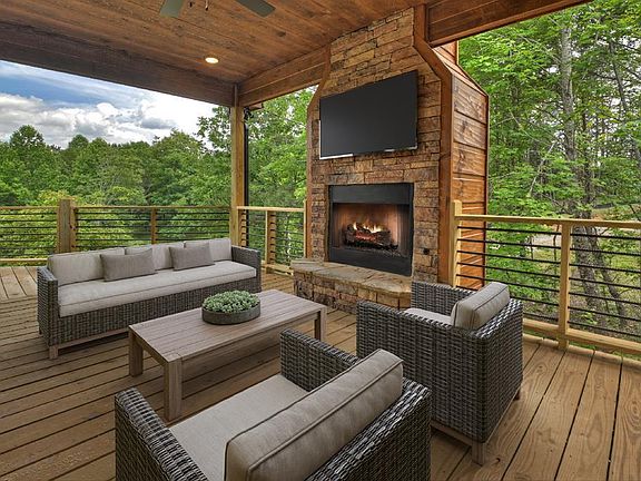 Welcome to your dream mountain retreat! This stunning new construction cabin offers the perfect blend of rustic charm. Step inside to discover a spacious open floor plan, where the kitchen seamlessly flows into the living area, making it ideal for entertaining family and friends. The kitchen features custom cabinets, island, granite countertops and stainless steel appliances and a perfect cozy spot for a dining table. Vaulted ceilings soar overhead in the living room, creating an airy and expansive ambiance. The large rock fireplace, adds a touch of rustic elegance to the space. Doors and windows frame picturesque views of the surrounding landscape, bringing the beauty of nature indoors. The large master bedroom on the main level features an ensuite bathroom with double vanities, walk-in tile shower, and 2 closets to accommodate all your wardrobe needs. Upstairs, you'll find two more bedrooms, perfect for family members or guests. A full bathroom is conveniently situated between the bedrooms. Descend to the basement level and discover a spacious entertainment and living area, complete with a ventless gas rock fireplace that radiates warmth and ambiance. Whether you're hosting game nights with friends or cozying up with loved ones for movie marathons, this versatile space is sure to be the heart of your home. A fourth room also awaits, offering endless possibilities as a home office, gym, or bunk room for accommodating additional guests. A third full bathroom is also conveniently located on this level. Step outside to the expansive double-covered porches, where you can relax and unwind. This home exudes warmth and character with its perfect mixture of different wood finishes. Conveniently located just 15 minutes from both Lake Blue Ridge & Lake Nottely, you'll have easy access to a variety of outdoor recreational activities. Whether you're seeking adventure or relaxation, this mountain retreat offers the perfect balance of serenity and excitement.