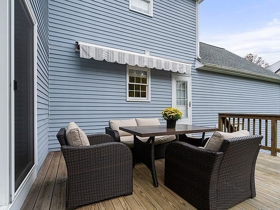 This stunning 4/2.5 colonial is nestled on a peaceful cul-de-sac located in a desired neighborhood. This gem is just streets away from shopping, dining + the top-rated local elementary school. Step inside and be greeted by the beautifully maintained interior & the abundance of natural light that floods every corner of this sun-drenched beauty. Relax by the glow of the gas fireplace in the large family room that flows into the bright open kitchen & casual dining space w/ large windows. Gleaming h/w flrs in dining room, family room & den. Entertain outside on the deck overlooking conservation land under the remote-controlled awning. The large primary suite with soaking tub is the perfect oasis with 3 generous bedrooms down the hall. The basement boasts endless possibilities for customization. Hobbyists rejoice with two convenient workbenches ready for all your projects. NEW IN 2023: FURNACE, 14 WINDOWS, ATTIC INSULATION, PAINT INT/EXT, CARPET, HARDWD FLS REFINISHED. ROOF REPLACED 2016.