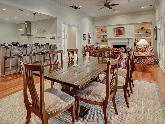 As soon as you enter this home on a discreet cul-de-sac, you'll know it's special. Flexible floorplan w/long views across the Pete Dye designed golf course to marsh. Comfortable den on entry & large foyer leading to beautiful great room w/near 12' ceilings. The 30' long screened porch offers ample outdoor living & entertaining space. Additional standout features include: newer kitchen w/breakfast bar, bright sunny gathering room w/fireplace & wet bar, quiet comfortable 2nd floor guest suite & stunning media room w/peaked ceiling & wrap-around balcony overlooking golf & marsh views.