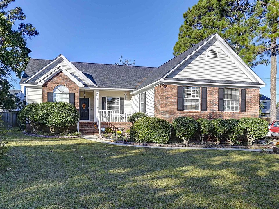 One level brick ranch on fully fenced yard with side entry garage. Split floor plan with 2 full baths. Kitchen with painted cabinets, granite counters, gas free standing stove, eat in area and pantry. Hardwood flooring in main room with great room/dining combination. Wood burning fireplace with tile surround and shiplap details above the mantel. French doors open onto deck. Owner's suite with walk in closet, granite counters, garden tub, separate shower, separate water closet. Comfort heigh toilets in both bathrooms, architectural shingles installed 2014, gutters. Call today for your private showing. Community features 2 pools, tennis courts and walking trails.