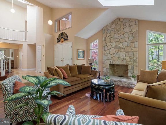 Canuso's ever popular "California Model" on a private wooded lot! There is a grand flyer with sweeping staircase and skylights, vaulted living room with a lovely stone fireplace, first floor office, white kitchen with updated stainless steel appliances and granite! The large family room offers a 2nd wood burning fireplace! You will love the wood floors and abundant sunlight! The upper level had 4 bedrooms, updated hall bathroom! The master suite on the 2nd level offers a private deck! Don't worry about storage, there is a 3 car garage and lots of closet space! You will love the fact the 2 zone gas heat/AC was replaced in (2012) and new roof in (2005)