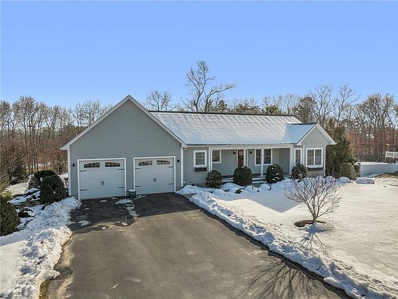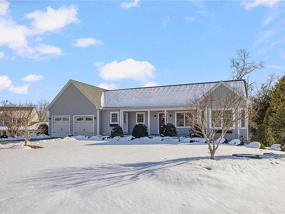 Enjoy serene luxury in this gorgeous, modern, three bedroom ranch in the desirable Oak Hill Estates. Built in 2015 and set back on a quiet cul-de-sac abutting acres of conservation land, this property is turnkey inside and out. Enter from the front porch into a bright, spacious, open floor plan living room, kitchen and dining area with gleaming hardwood floors and vaulted ceilings. A modern kitchen with a large island, granite countertops and stainless steel appliances, overlooks the dining area and living room with a gas fireplace. This spectacular floor plan features a large primary bedroom suite, with a walk in closet, and primary bath with double vanity, powder room area and stand up shower. Walk out to the back deck from the bedroom or a slider from the dining room. Conveniently located in a hallway outside the primary suite, you'll find the laundry area, a half bath and lots of closet space. On the opposite end of the home, you'll find two more bedrooms, perfect for a home office, and a second full bath. Venture downstairs and find a beautifully finished walkout basement, and lots of unfinished space with unlimited potential. Outside you'll be greeted by a large, private backyard with beautifully landscaped grounds and a huge patio with a built-in fire pit. This home is perfect for entertaining friends and family or just relaxing at home, both inside and out. In ground sprinklers, central air, on demand hot water, generator, two car garage, shed. This home has it all!