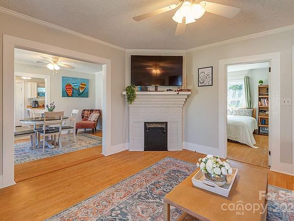 Welcome to 17 Dundee - a quintessential 1920’s Asheville charmer, convenient to it all but still feeling tucked away on a dead end street w/ city skyline view. Enjoy 1 level living, with features like a charming foyer entrance, outdoor entertainment space, spacious living room filled with natural light, and a decorative original fireplace! Enter the formal dining room that connects with an open doorway that leads to the kitchen for perfect hosting. Spacious laundry room and mud/storage room in the back. An updated bathroom sits between the split bedrooms, both offering ample space! A quaint but level backyard is the perfect place to host or build a small fire-pit or hot tub! Ample paved tandem parking. Come visit this remarkably cute home with a spectacular location!