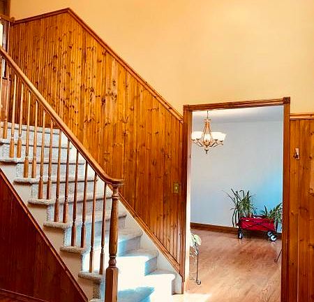 Great Colonial Home, perfect for the active family. House sits on an acre on quiet cul-de-sac, no thru traffic. Property backs to wooden green acres, great for walks. Enter 2 story foyer with french doors to an ofc or formal lvg rm with built-ins and wood flrs. Nice size dining rm with hardwood flrs. Spacious recently reno kitchen with maple cabinets for ample storage, granite cntrtps, large island with seating, plenty of wk space. SS app, wall ovens, porcelain tile flr. Family rm flows off kitchen with brick wb fireplace, hardwood flrs. In-law suite on 1st flr with lvg rm, bdrm, ¾ bath. Huge master bdrm on 2nd flr with sitting area, hardwood flr, private ensuite with Jacuzzi, over-sized WIC. 3 additional nice sized rms with double door closets. All wood doors/moldings. Huge Trex deck of OVER SIZED 2 CAR GARAGE WITH ABOVE ATTIC STORAGE