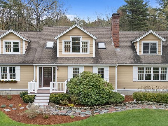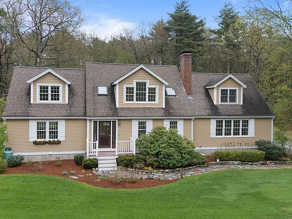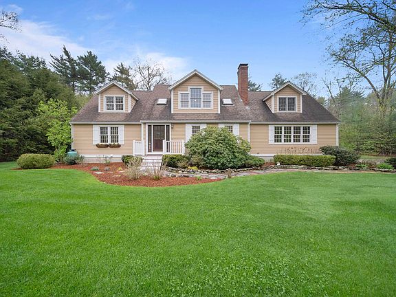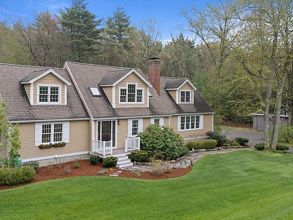 Discover the perfect blend of comfort, character, and convenience in this expanded 4-bed, 4-bath Cape, tucked away on a beautifully landscaped, level lot in a residential neighborhood. Step inside to the sun-filled side entry and find a spacious mudroom w/ radiant heat floors and built-in cubbies. The first floor offers a flexible layout, including a large home office w/ custom counter workspaces and its own half bath—ideal for remote work, a guest suite, or potential in-law space. The remodeled kitchen features white wood cabinetry, sleek black granite ctops, SS applcs, and breakfast island—just right for everyday living. Butler's Pantry w/ 2nd refrig. too! The adjacent eat-in area makes casual meals a breeze, while the formal dining room w/ wood-burning fireplace sets the stage for more formal gatherings. A spacious Great Rm offers space for two seating areas. Upstairs, find four generously sized BRs, two full baths, and a laundry area. Updated main bath w/ tile plank flooring, a modern vanity, and a tiled tub surround. Primary Suite w/ 3/4 bath and walk-in closet. Stay cool indoors this summer w/ central A/C, or step outside to unwind on the private back deck and yard, which is a peaceful oasis featuring an above-ground pool, a serene vernal pond and numerous blueberry bushes. Two sheds for storage. This home offers timeless charm just minutes from the MA border and is ready for its next chapter! ***OFFERS suggested to be submitted by Tues, 5/13 at 5pm.***