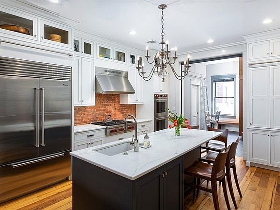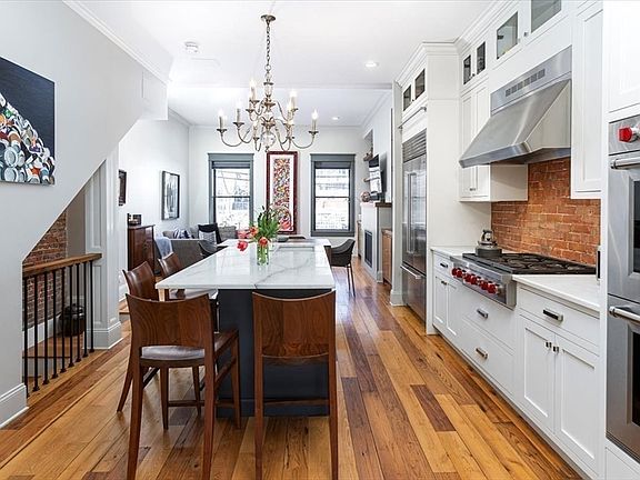 Fabulous Eight Streets parlor duplex with direct access parking & private patio with snowmelt system! Fully renovated 2 bedroom + office, 2 full and 1 half bath home has it all and is ideal for entertaining, the parlor level Chef's kitchen features top-of-the-line Wolf & SubZero appliances, custom cabinetry with ample storage, natural stone counters, antique brick backsplash, and reclaimed Chestnut hardwood flooring. A separate entry foyer has a built in work station, bench and large front hall closet and custom glass pocket doors to separate the office from the kitchen and living room. A large and open concept living and dining has Walnut built-ins, a gas fireplace with stone surround and abundant natural light! The lower level offers two en suite bedrooms, abundant storage, laundry and access to a large private patio offering a built in grilling station, storage and a snowmelt system. This Sensational duplex home is complete with central air and full direct access parking space!
