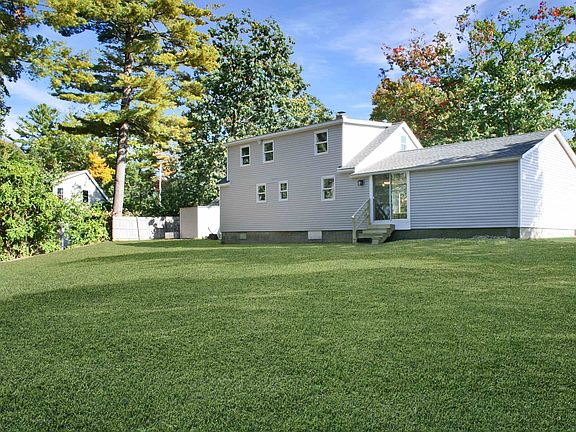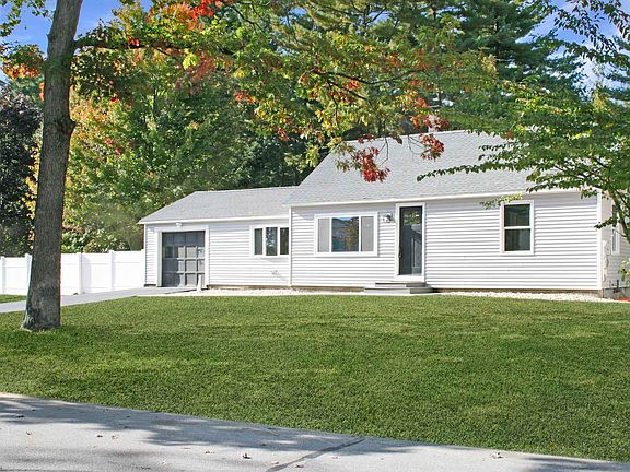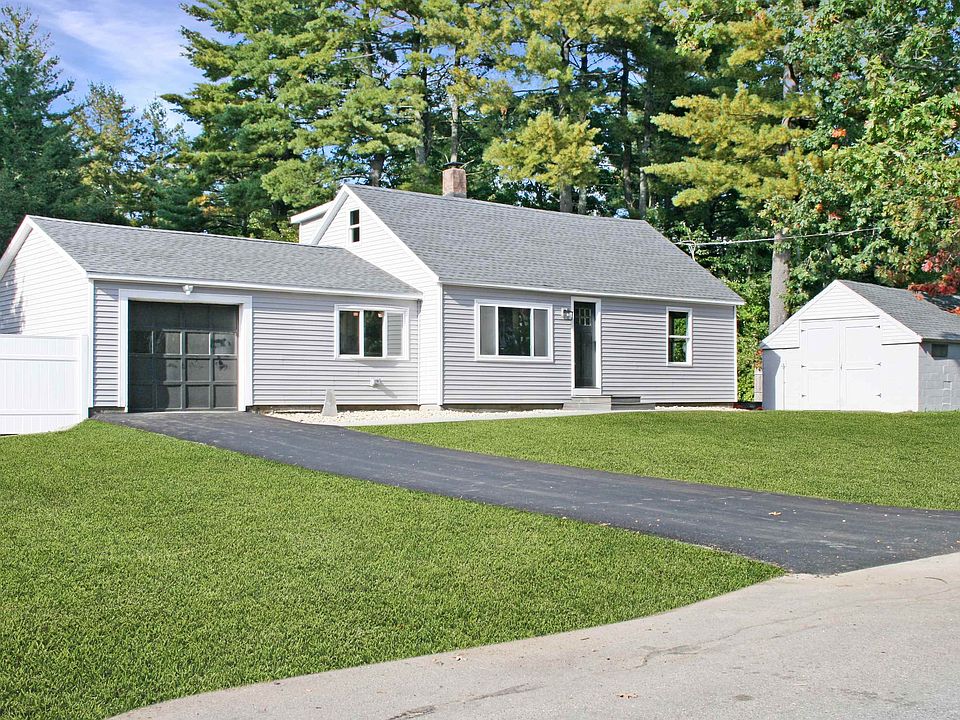 Welcome to desirable Merrimack NH! This gorgeous completely renovated and remodeled 3 bedroom 3 bath 1940 mid-century home is waiting for its new owners! The first floor boasts an open concept main living area with a beautiful remodeled kitchen. You'll enjoy the new stainless steel appliances, cabinets, quartz countertops and island with pendant lighting. Step out of the kitchen and enjoy the open feeling of a cathedral ceiling, open dining and living room where your sure to create memories and enjoy special moments. You'll love your first floor primary bedroom with a walk in closet and a tranquil primary en-suite. All new flooring and paint finish off the first floor. The second floor boasts two remodeled ample and airy bedrooms with a full bathroom. All new paint finish off the second floor. Wait there's more! A bonus room in the basement is perfect for a gym, home office or game room. Outside is a detached oversized garage which has heat and electricity and can be used as a work shop, gym or just about anything you can imagine. Enjoy over an acre of land and a spacious back yard, perfect for entertaining or relaxing moments. This stunning home cannot be missed!