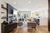 3-bedroom, 3.5-bath Montgomery Crossing townhome built in 2020, with a RARE FULLY FINISHED LOWER LEVEL including a FULL BATH and FLEX ROOM WITH CLOSET AND STREET LEVEL EGRESS WINDOWS - one of only a few in the entire neighborhood. Designer kitchen impresses with quartz waterfall countertops, full-height 48-inch cabinetry, vented range ...
