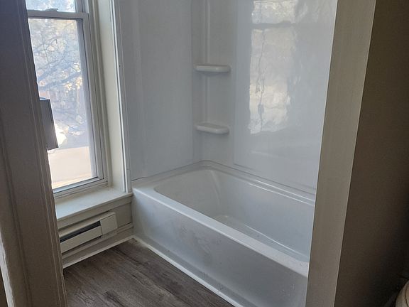 Efficiency style apartment, Ideal for 1 person. One large room with small kitchen, bathroom off to the side. Freshly painted, brand new floors and bathroom, as you can see contractor is just wrapping up. Available now, feel free to call for details, thanks! Owner pays water, sewer, trash. Tenant pays eletric, heat. (heat is baseboard electric)