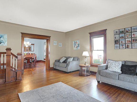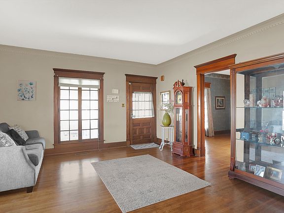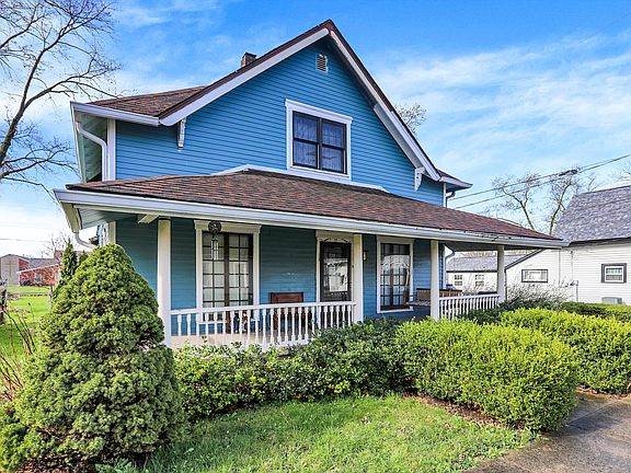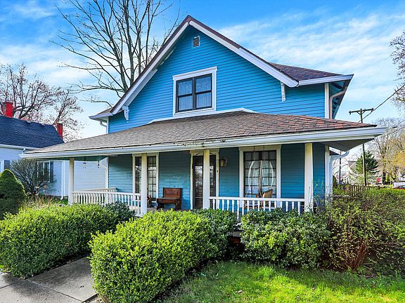 Charming 3-bedroom home in New Palestine with a covered front porch, perfect for relaxing. Spacious living room and cozy den/library with built-in bookshelf and fireplace. Kitchen boasts ample storage, while the dining room offers a delightful window seat. A large great room with access to the back deck provides additional space for relaxation and entertainment. Retreat to the master bedroom with its own sitting room and walk-in closet, along with another bedroom on the upper floor and one on the main level for family or guests. Fenced backyard provides a private retreat for gatherings and enjoying the outdoors.