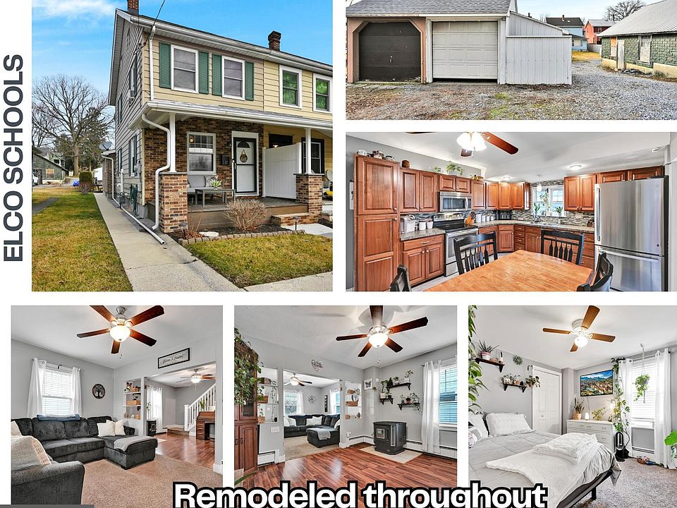 Step into the perfect blend of comfort and style with this charming home that's ready to welcome you in. As you enter, you'll immediately feel the warmth of tasteful decor and the soothing presence of plants throughout, creating an inviting and homely atmosphere.The remodeled interior boasts a modern eat-in kitchen, where stainless steel appliances gleam against the accent lighting above cabinets and a sleek tile backsplash. Convenience meets luxury with the first-floor laundry and a separate full modern bathroom featuring elegant tile floors. Relax and unwind in the living room or family room, where a wood pellet stove adds a cozy touch to chilly evenings. Alternatively, the family room can easily transform into a dining area, perfect for hosting intimate gatherings or family dinners. Upstairs, three remodeled bedrooms await, each adorned with ceiling fans to keep you comfortable year-round. A walk-up attic offers versatile space for storage or can be transformed into a playroom, adding to the home's flexibility. Outside, a new composite decking front porch welcomes you home, while a new roof ensures peace of mind. The home's insulation, replacement windows, and upgraded natural gas furnace and indirect hot water heating provide efficiency and comfort. Recent updates also include an upgraded electric panel for added convenience. The partially finished basement offers additional living space, complete with built-in shelves and a convenient 3/4 bathroom, perfect for workouts or relaxing evenings. Step outside to discover a charming exterior with vinyl and brick siding, a landscaped rear patio, and a spacious 10 x 20 one-car garage, currently serving as a workshop with an attached storage shed for all your gardening tools. Convenient off-street parking in the rear completes the picture of this delightful home, offering both comfort and functionality in one perfect package. Don't miss the opportunity to make this your forever home! Be sure to view the list of upgrades in the documents section!