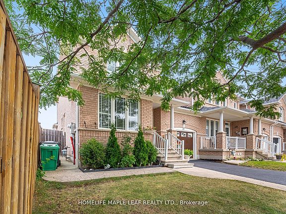 Beautiful link-detached home in the desirable Fletchers Meadow community! Features 3 spacious bedrooms, 3 bathrooms, and an extra-wide stamped concrete driveway. Enjoy 9 ceilings on the main floor, with a bright and open layout that includes living, dining, and family rooms. Interior finishes include parquet flooring, ceramic tiles, upgraded fireplace mantle, and oak staircase. Large windows throughout offer abundant natural light. The primary bedroom features a full ensuite. No sidewalk in front, offering ample parking. Cold room and 3-piece rough-in in the basement. Located on a wide lot in a child-safe neighbourhood, close to schools, parks, transit, and all amenities. Move-in ready! Conveniently Located Near McLaughlin And Wanless, With Easy Access To Highways 410, 407, 401, And 403, As Well As Brampton Transit, The Future Hurontario LRT, And Mount Pleasant GO Station. Walking Distance To Reputable Schools Like St. Lucy Catholic Elementary And Public Schools, And Just Minutes From The Cassie Campbell Community Centre, Parks, Grocery Stores, Restaurants, And Places Of Worship. Come And Fall In Love With This Beautiful Home!