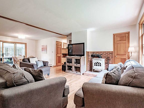 OPEN HOUSES 8/10 & 8/11 Within a short distance to Freeport shopping, restaurants and the library, this one-level home features a split floor plan with the Master Suite on one side of the Open Living/Dining room area and two bedrooms and another full bath on the other side. The laundry area is located just inside the back door near the efficient kitchen. Enjoy sitting in the 3-season sun room overlooking a lush backyard or in the open concept living/dining area cozied up to the woodstove on those Maine winter nights. A 2-car detached garage (24X24) offers plenty of storage space while the full unfinished daylight basement boasts extra high ceilings just waiting for you to finish another 1300+ square feet of living space. This 48x28 modular home has been updated with hardwood floors and well maintained just for you! Enjoy life in downtown Freeport, walk to the train station for you easy trips to Boston, Portland or Brunswick!