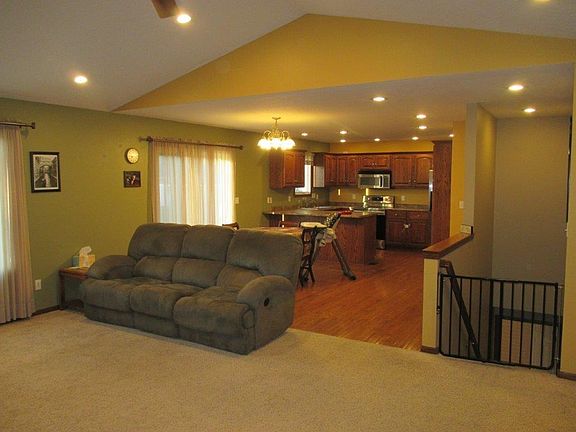 Large newer ranch in a cul-de-sac with open floor plan and vaulted ceilings. Main floor laundry off of kitchen. 3 bedrooms on main floor with master bath and double closets. Central vac. Open stair case to finished basement, except ceiling not finished. Lower level has 4th bedroom with egress window but no closet and possible 5th bedroom as well. Nice ¾ bath downstairs. Tons of storage!! Fenced in backyard with a patio. Motivated sellers!
