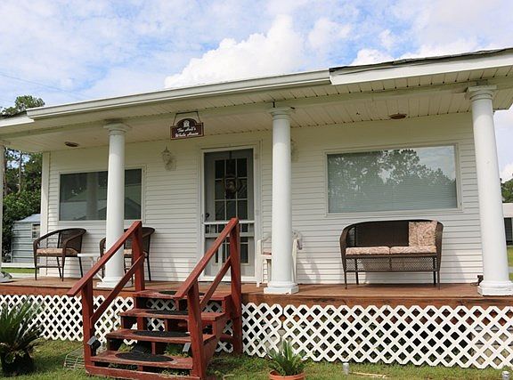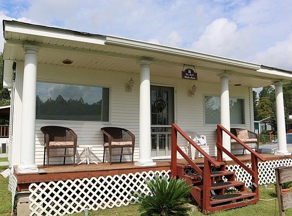 This was an office on a car lot that has been converted to a cute little home - Accomodates 2 double beds.. Has 1 bedroom and only a half bath inside. The full bath is outside in the shed. Gotta see it to appreciate the cuteness.