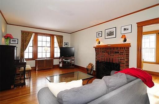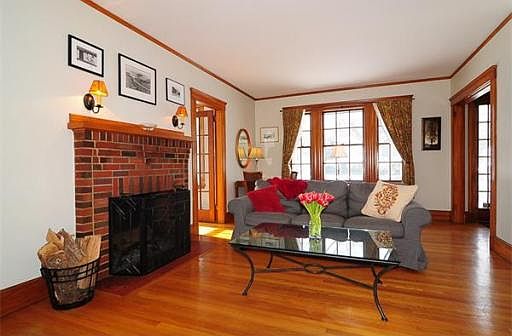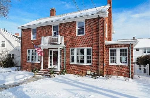 Stately Brick Center Entrance Colonial in the desirable Bishop School location! Features include front to back living room with fireplace, formal dining room with built in china cabinet, natural woodwork, eat in kitchen with stainless steel appliances and recessed lighting, mudroom, 1st floor sun room adjacent to the living room, hardwood floors, 4 corner bedrooms on the 2nd floor, tiled baths, 2nd floor laundry, walk up attic with access from the hallway, lots of storage, many newer windows, basement exercise/play room area with lots of potential, fenced yard, detached garage. A good opportunity to finally find a home with 4 bedrooms! Great location near the Bishop School, the Bike Path, Arlington Center for shopping, restaurants and buses to Alewife. A Treasure!